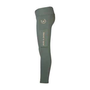 Riemlussen op de tailleband, zijzakken en een nep gulp aan de voorkant creëren de authentieke ‘breech’-look. Kies je favoriete kleur en coördineer je hele paardrijgarderobe.