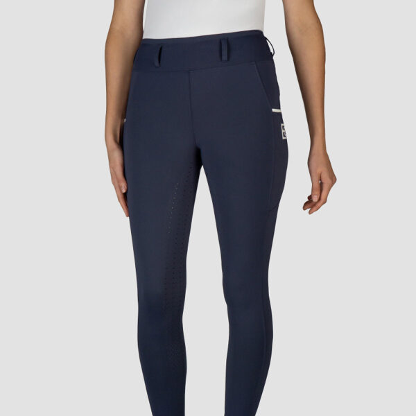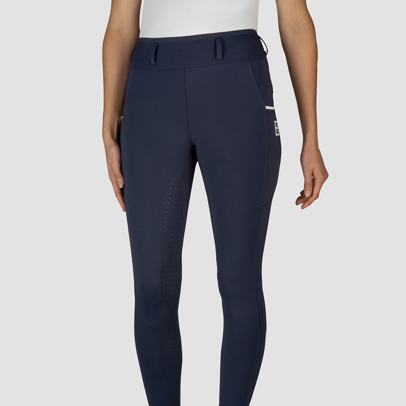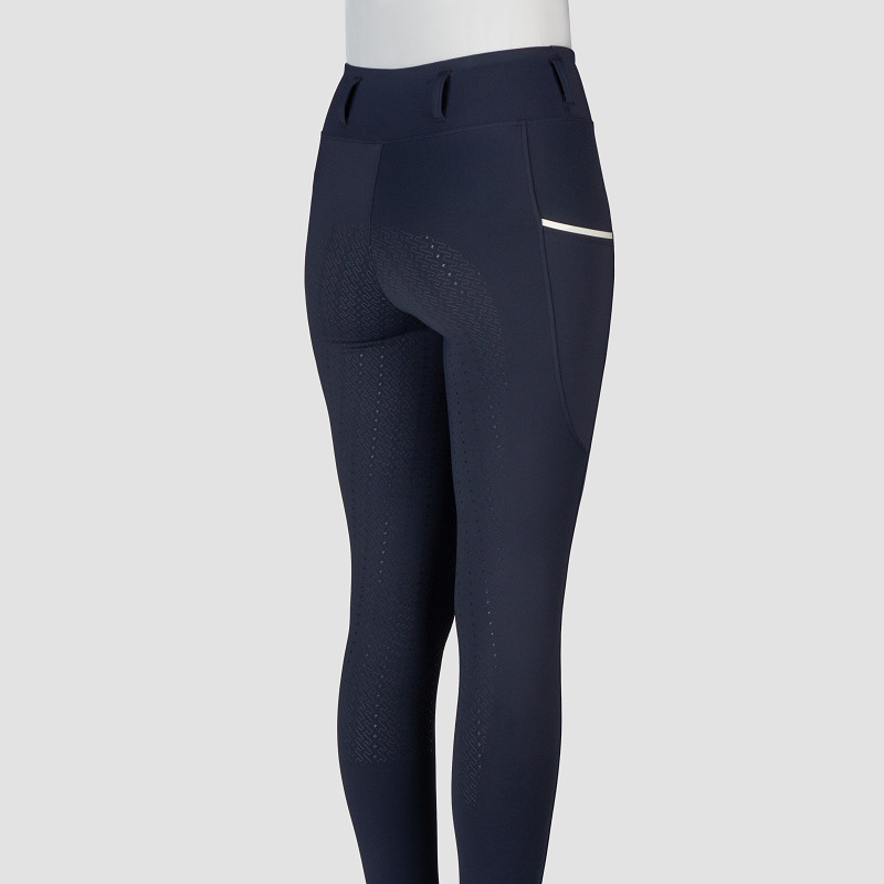 Comfortabele rijlegging van sneldrogend en ademend materiaal. Behandeld met Polygiene OdorCrunch voor langdurige frisheid. Afgewerkt met elegante parelglitterdetails, een siliconen zitvlak en praktische zijzakken voor je telefoon.