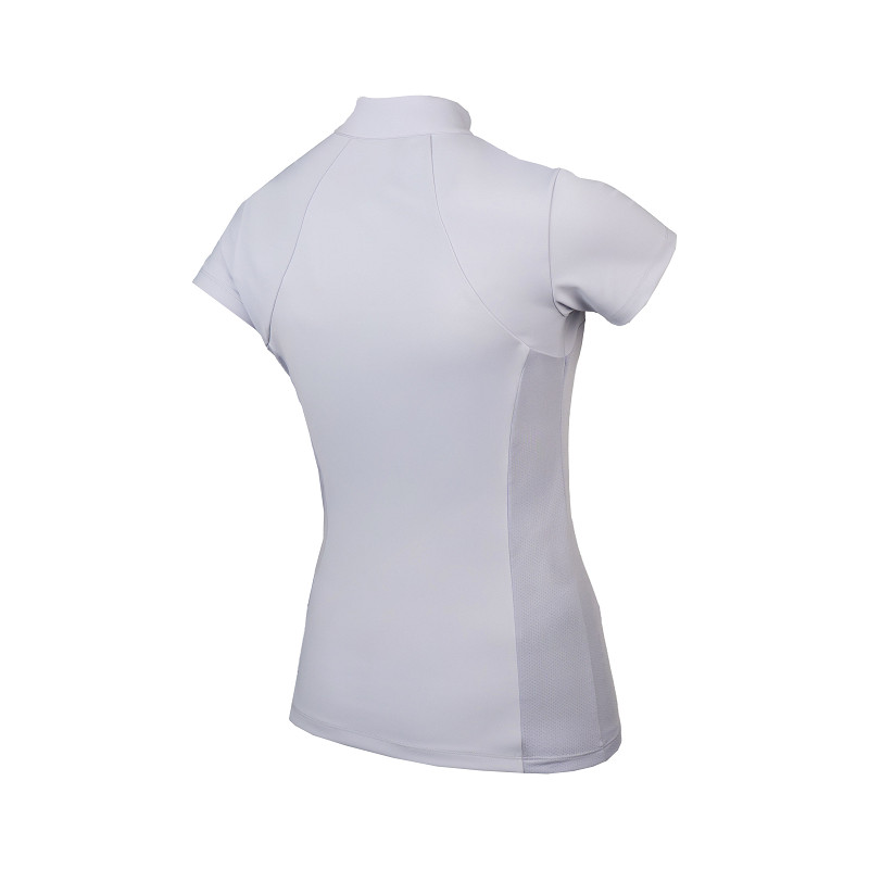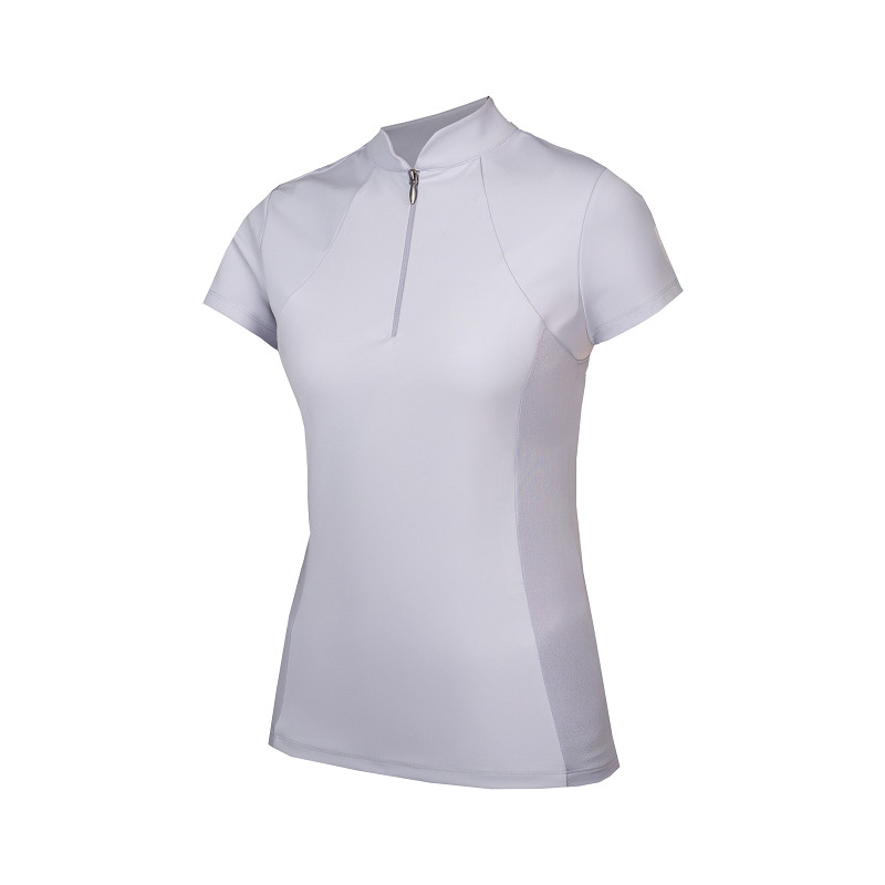 Trainingsshirt met korte mouwen van hoogwaardige comfortabele stretchstof. Het ademende en sneldrogende materiaal welke behandeld is met Polygiene OdorCrunch zorgt voor optimaal draagcomfort en frisheid gedurende de dag. Ontworpen met een halve rits aan de voorzijde en een subtiele opstaande kraag, afgewerkt met witte parelglitterdetails voor een verfijnde uitstraling.